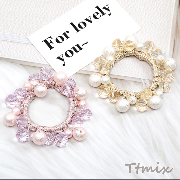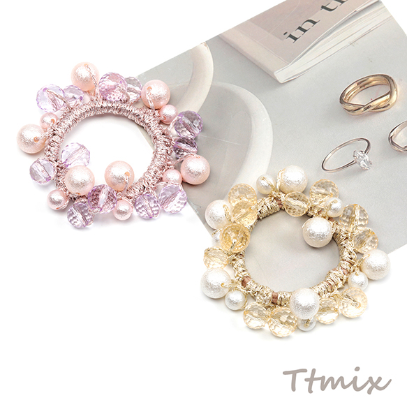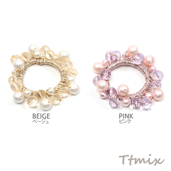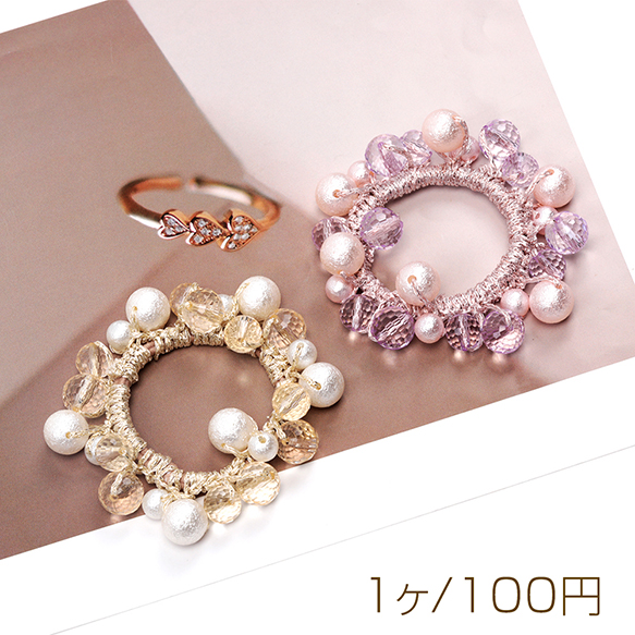 ヘアゴム コットンパール風ビーズ アクリルビーズ 多面カット 手作り おしゃれ 可愛い 髪留め(1ヶ)