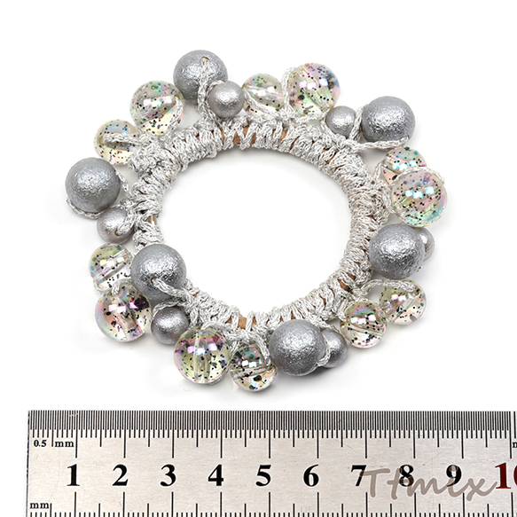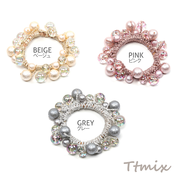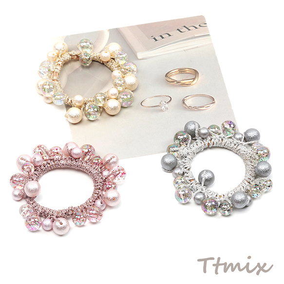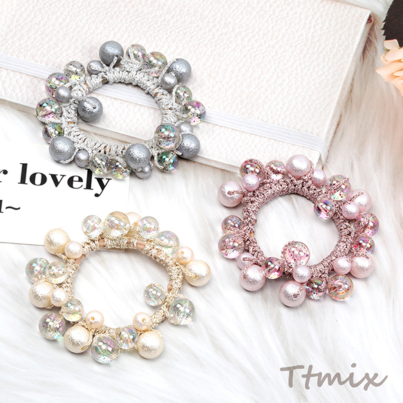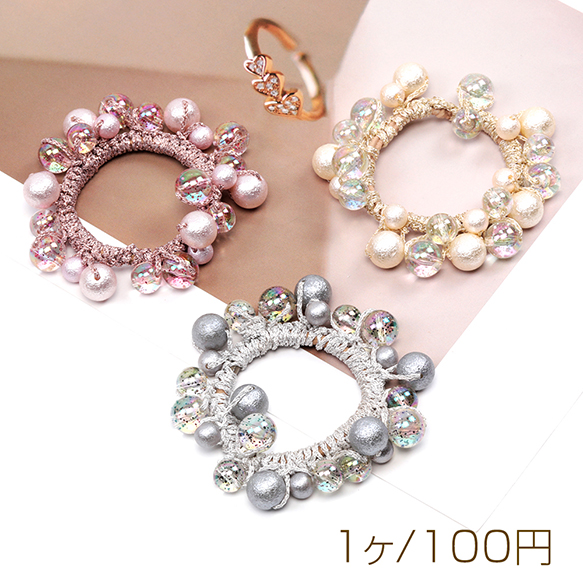 ヘアゴム コットンパール風ビーズ アクリルビーズ ラメ入り 手作り おしゃれ 可愛い 髪留め(1ヶ)