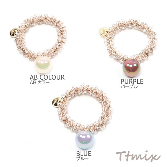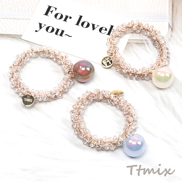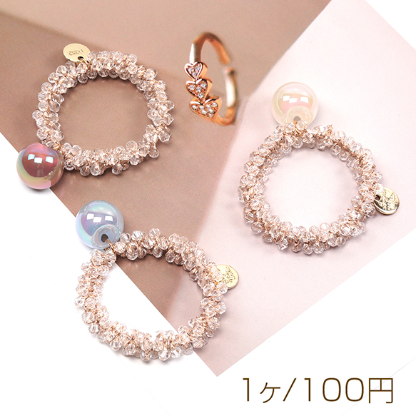 ヘアゴム クリスタルガラスビーズ アクリルビーズ 手作り おしゃれ 可愛い 髪留め(1ヶ)