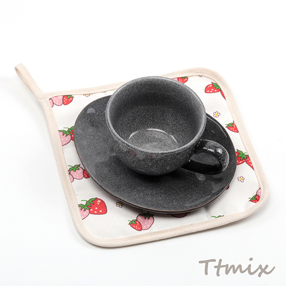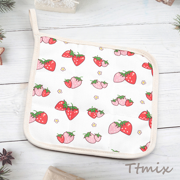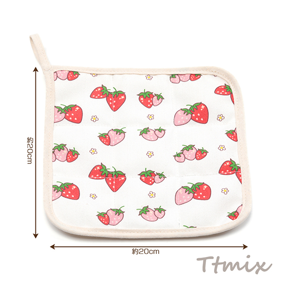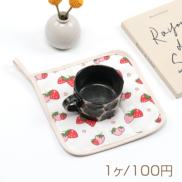 コースター 綿 イチゴ 苺 いちご模様 スクエア 四角 シンプル 厚手断熱パッド 約20×20cm(1ヶ)