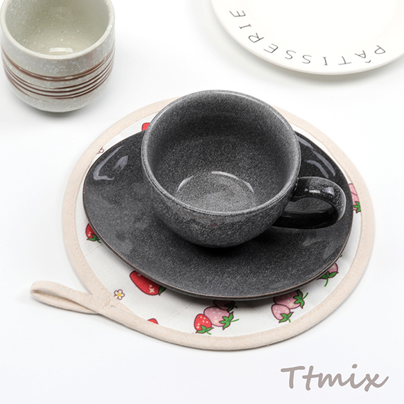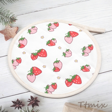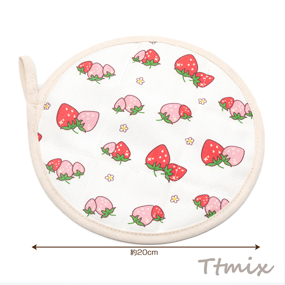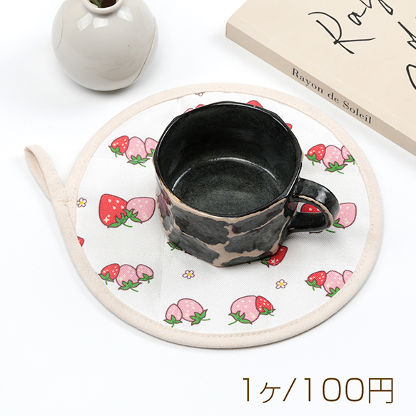 コースター 綿 イチゴ 苺 いちご模様 サークル 丸形 シンプル 厚手断熱パッド 約20cm(1ヶ)