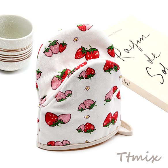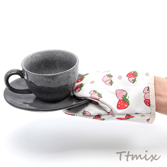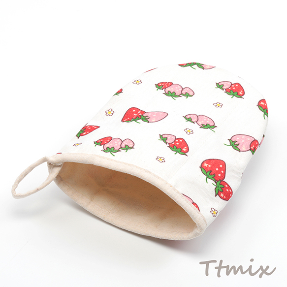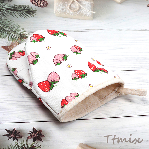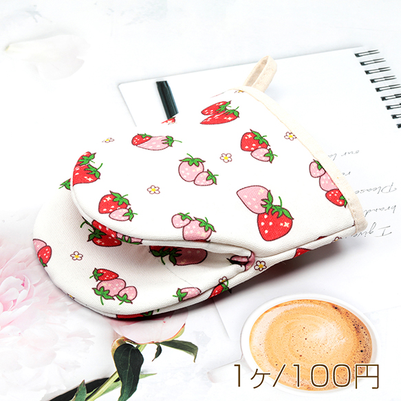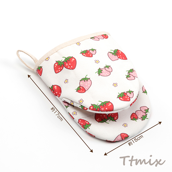 ミトン 綿 イチゴ 苺 いちご模様 厚手 電子レンジ オーブン 鍋つかみ キッチン用品 約15×17cm(1ヶ)