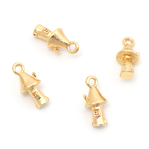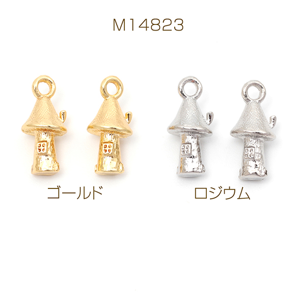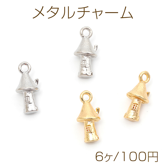 メタルチャーム 合金製 えほん風きのこハウス 物語 おうち 家 キノコ ミニチュア 飾り メタルパーツ 約6×14mm(6ヶ)