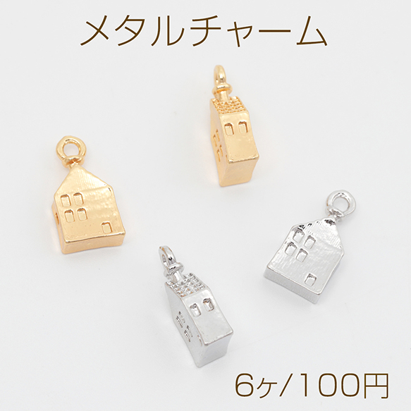 メタルチャーム 合金製 えほん風ハウス 物語 おうち 家 建物 ミニチュア 飾り メタルパーツ 約7×14mm(6ヶ)