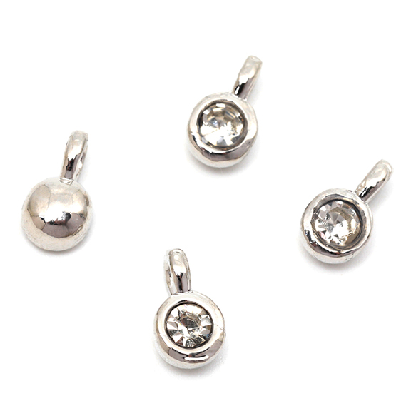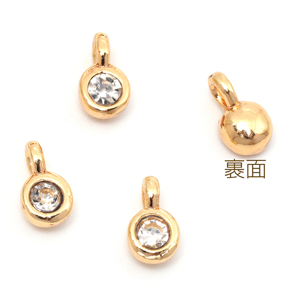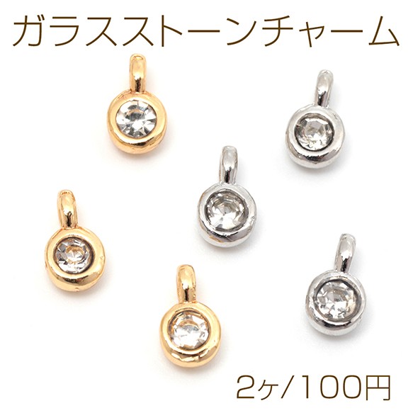 ガラスストーンチャーム 合金製 サークル ガラスチャームメタルチャーム 約5×9mm(2ヶ)