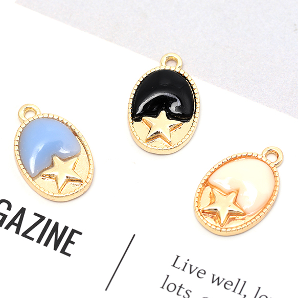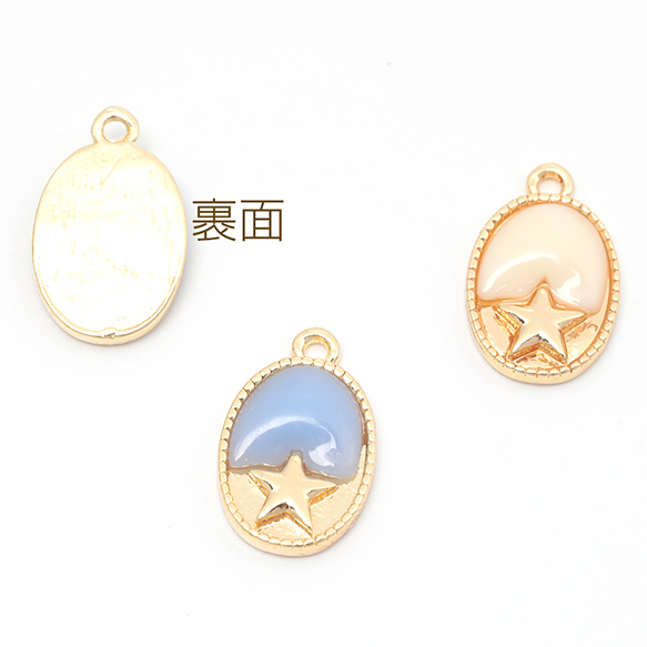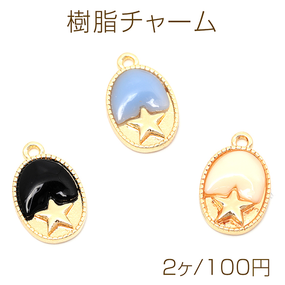 樹脂チャーム 合金製 オーバル 星 スター 天体観測 メタルチャーム 約11×17mm(2ヶ)