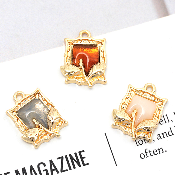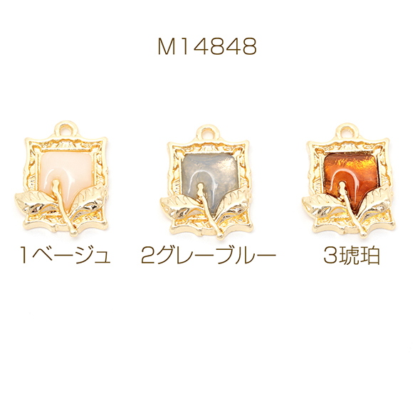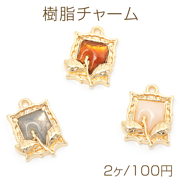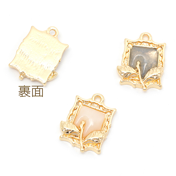 樹脂チャーム 合金製 スクエア フラワー 花 額入り メタルチャーム 約13×18mm(2ヶ)