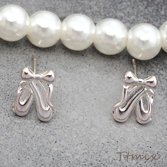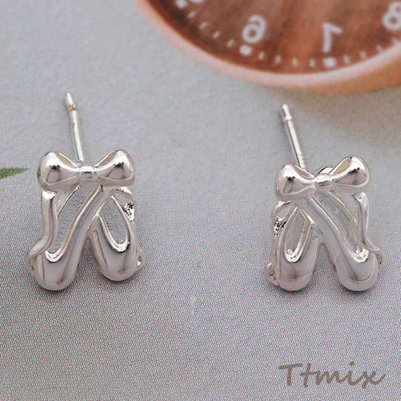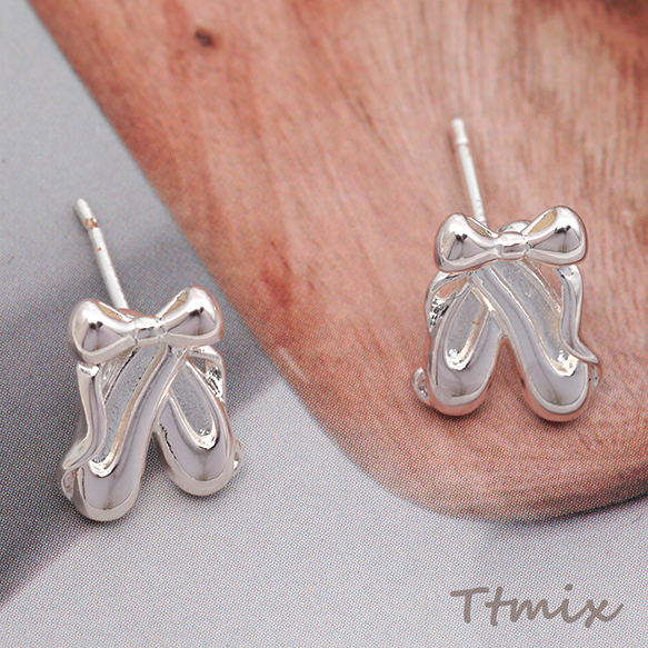 デザインピアス 銅製 バレエシューズ プリマ 踊り子 ダンス リボン付き 約9×11mm(1ペア)