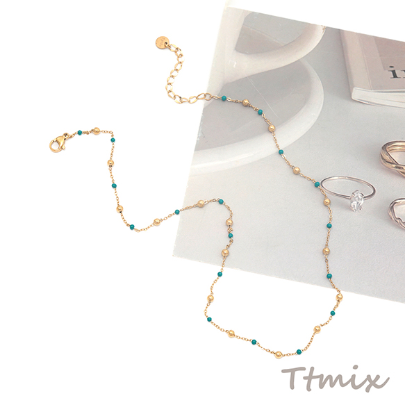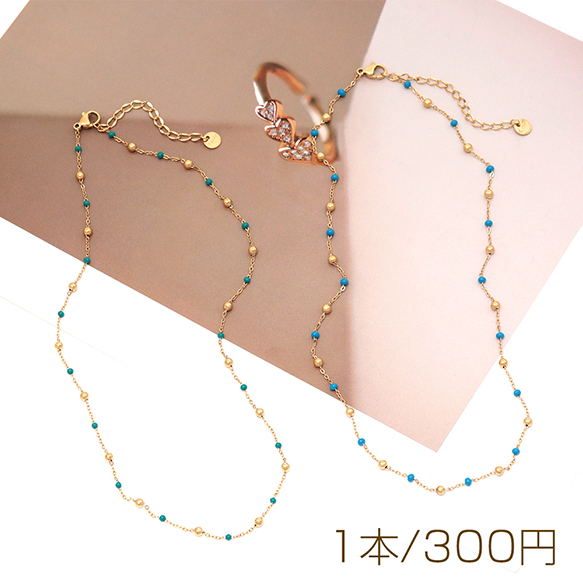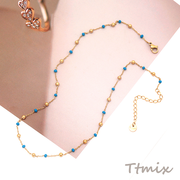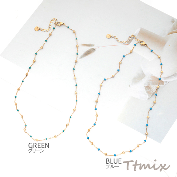 ネックレス ステンレス鋼 丸玉 エポ付き シンプル デザインチェーン 長さ約41+6cm(1本)