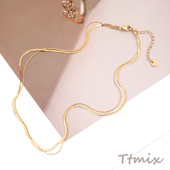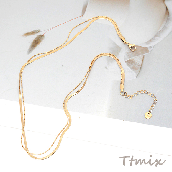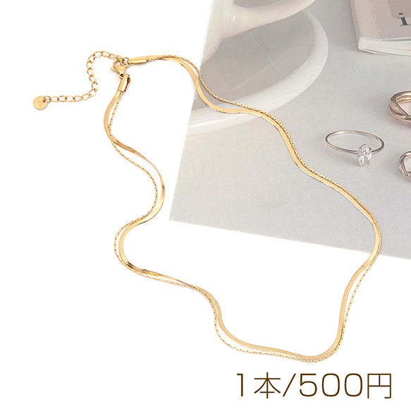 ネックレス ステンレス鋼 2重 ダブルチェーン シンプル デザインチェーン 長さ約40+6cm(1本)