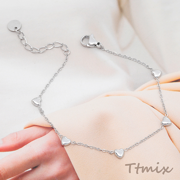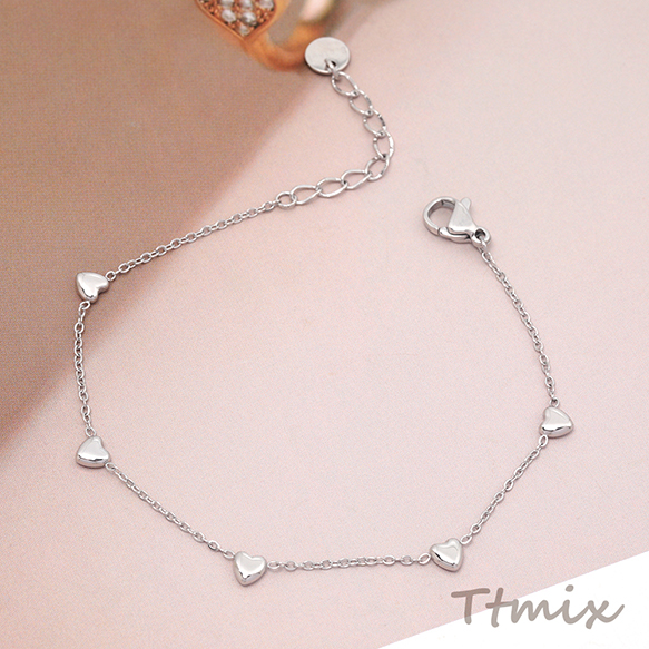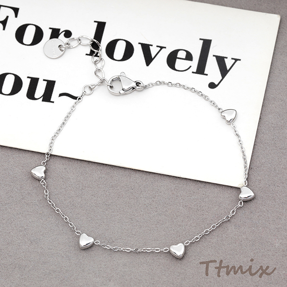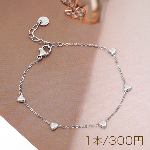 ブレスレット ステンレス鋼 ハート シンプル デザインチェーン 長さ約16+4cm(1本)