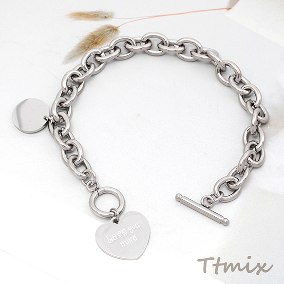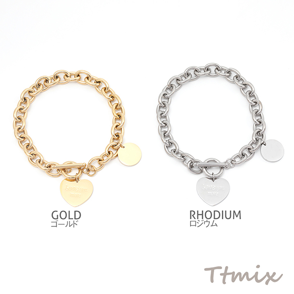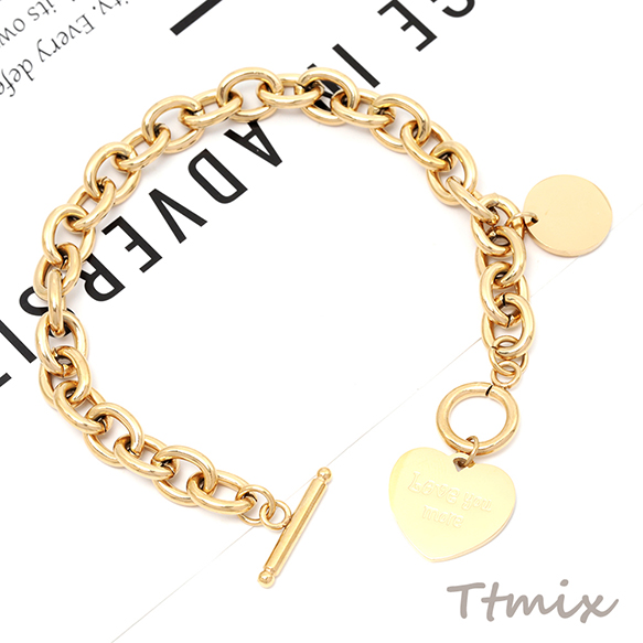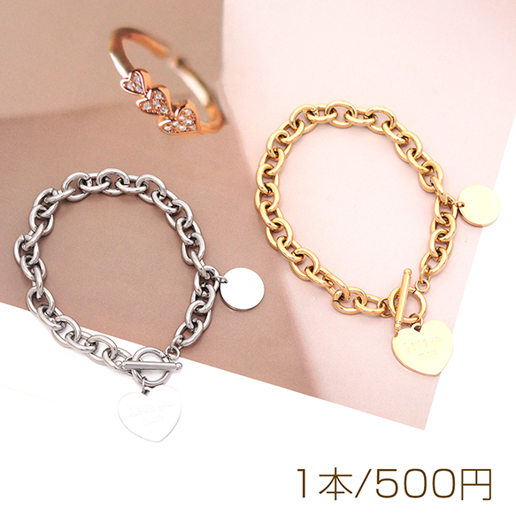 ブレスレット ステンレス鋼 ハート マンテル付き 太め ワイルド シンプル デザインチェーン 長さ約20cm(1本)