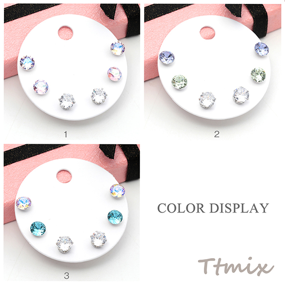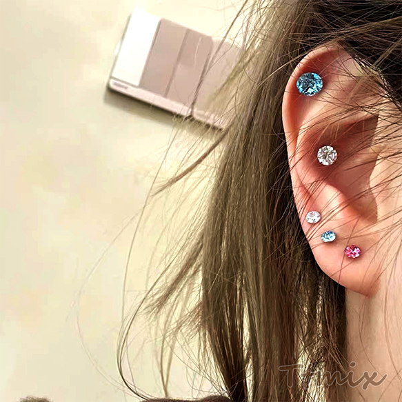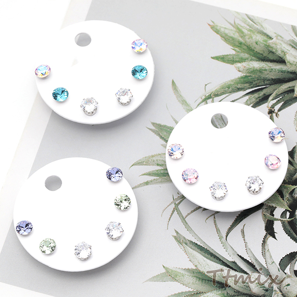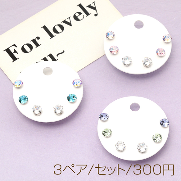 デザインピアス 高品質 ハート型 シルバーポスト ガラス製 約6mm(3ペア/セット)