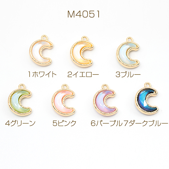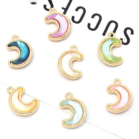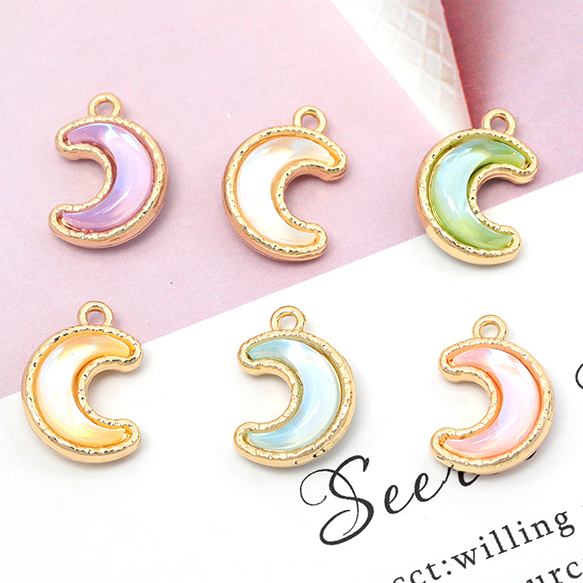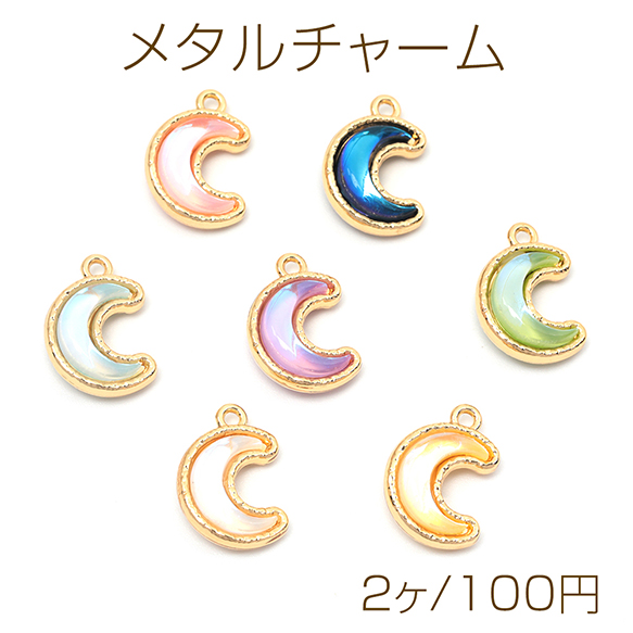 メタルチャーム 月型 オーロラ ペンダントパーツ 合金製 約13×18mm(2ヶ)