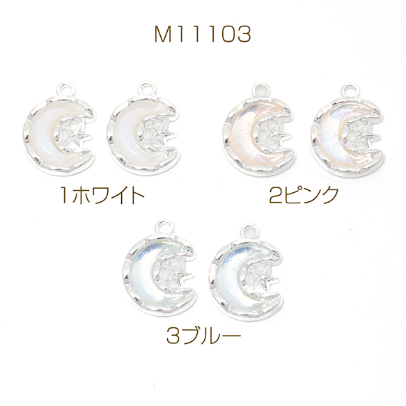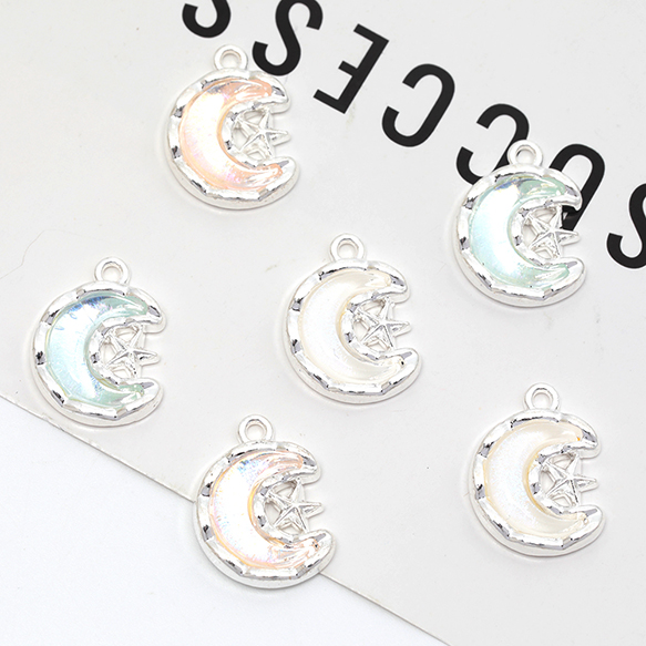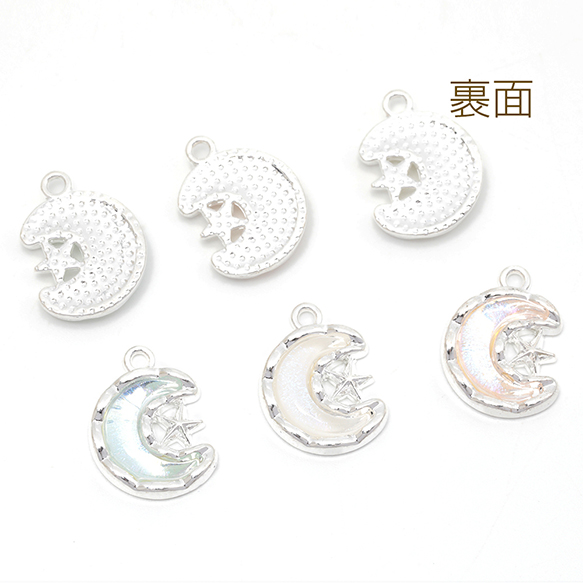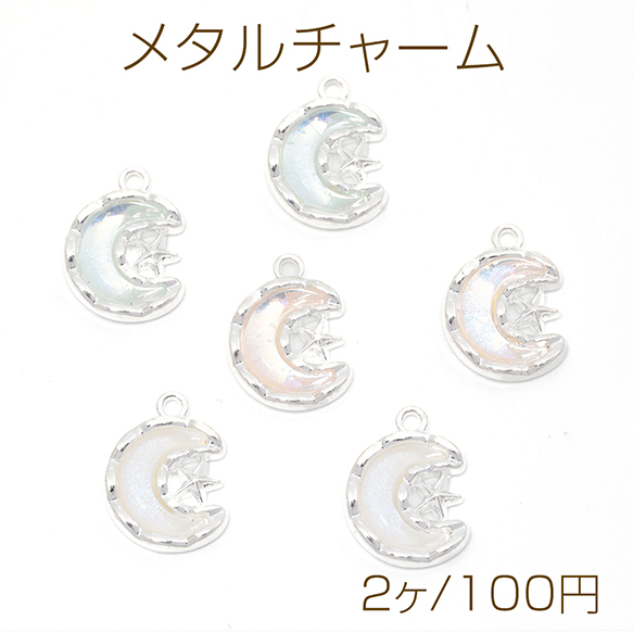 メタルチャーム 星&月 オーロラ シルバーカラー 合金製 約14×18mm(2ヶ)