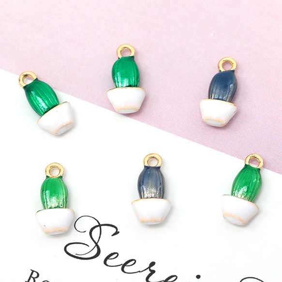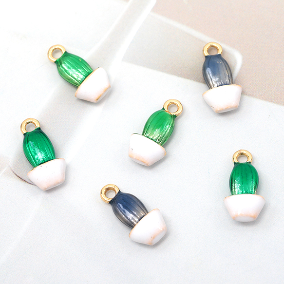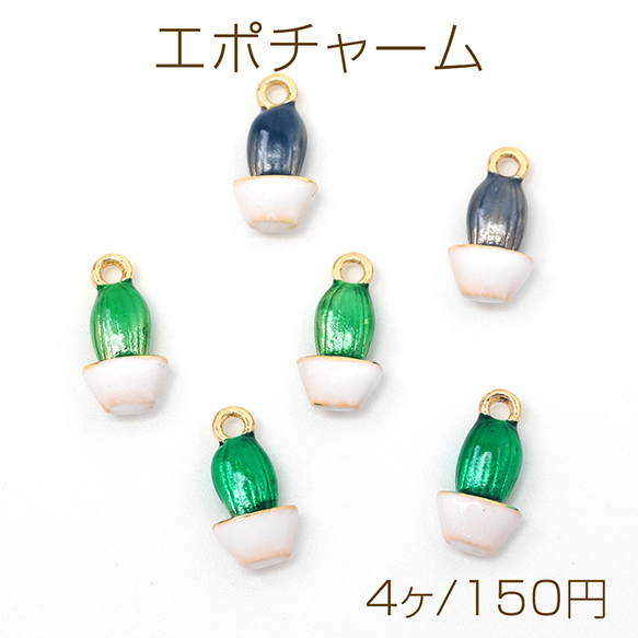 エポチャーム 合金製 サボテン シンプル 植物 メタルチャーム 約7×14mm(4ヶ)