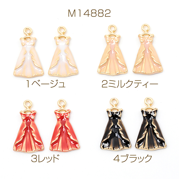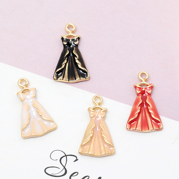 エポチャーム 合金製 リボン ドレス ワンピース ミニチュア メタルチャーム 約11×19mm(4ヶ)