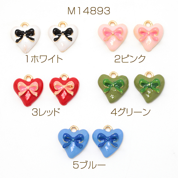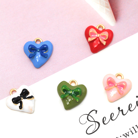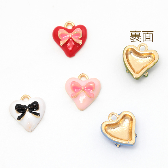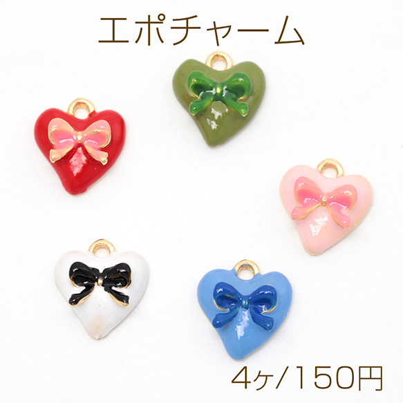 エポチャーム 合金製 ハート リボン メタルチャーム 約11×13mm(4ヶ)