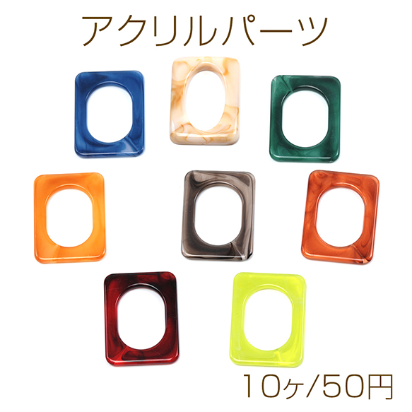 アクリルパーツ アクリル製 長方形 マーブルカラー 穴なし 約30×40mm(10ヶ)