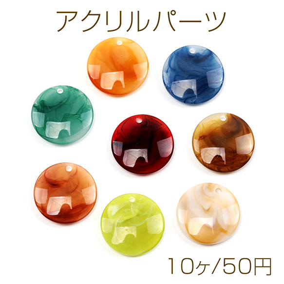 アクリルパーツ アクリル製 円形 サークル プレート マーブルカラー 1穴 約30mm(10ヶ)