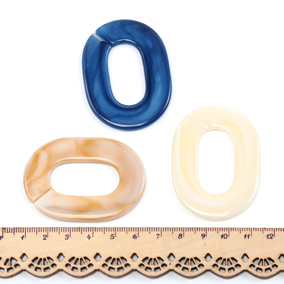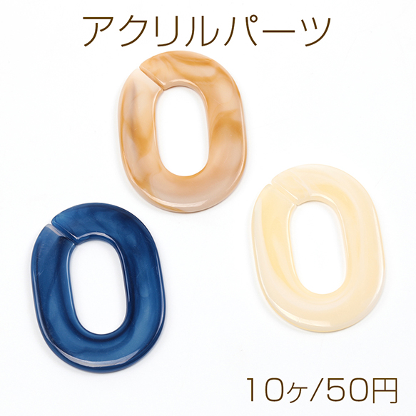 アクリルパーツ アクリル製 オーバル 切れ目付き マーブルカラー アクリルチェーンパーツ 約40×55mm(10ヶ)