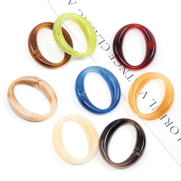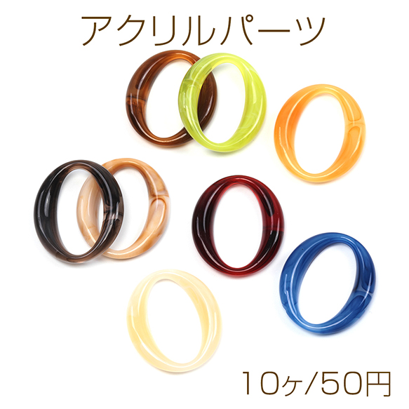アクリルパーツ アクリル製 リング型 変形オーバル マーブルカラー 1穴 約35×40mm(10ヶ)