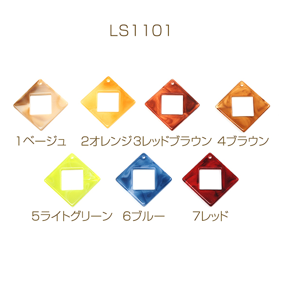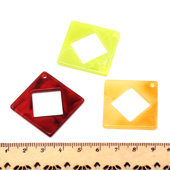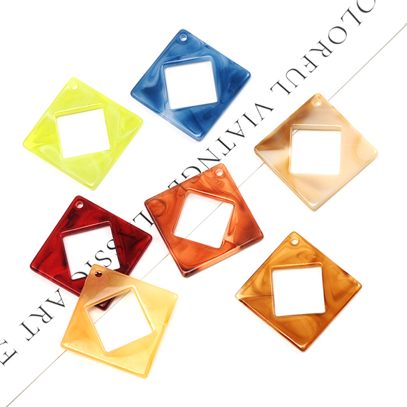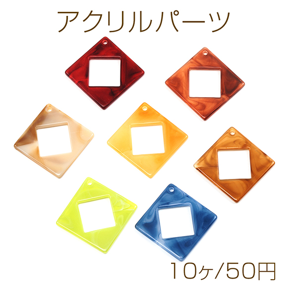 アクリルパーツ アクリル製 変形プレート型 正方形 スクエア マーブルカラー 1穴 約42×42mm(10ヶ)
