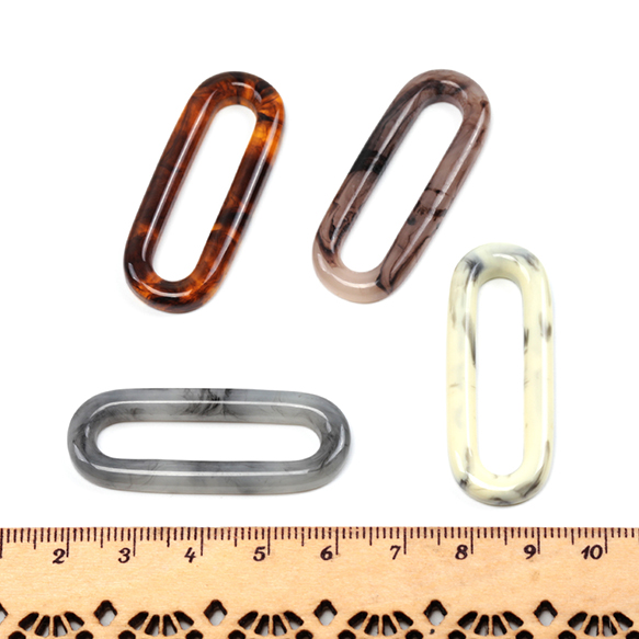 樹脂パーツ 樹脂製 角丸オーバル 中抜き 2色マーブルカラー 約16×42mm(10ヶ)
