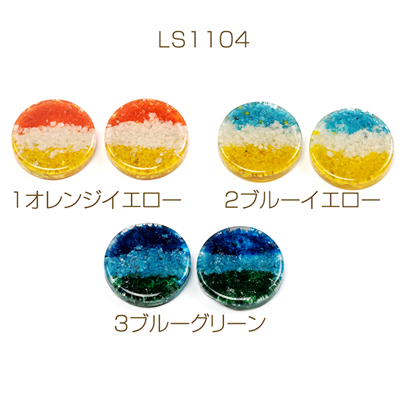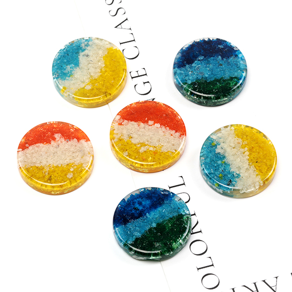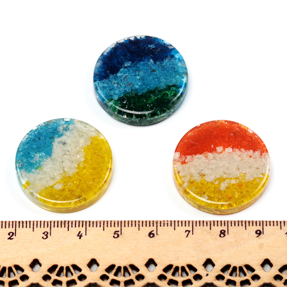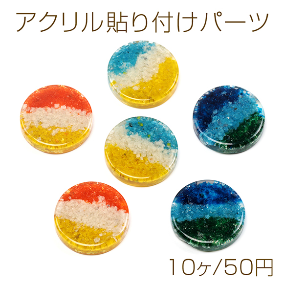 アクリル貼り付けパーツ 樹脂製 円形 サークル 貝殻 貝紛 3色 カラフル 穴なし 約28mm(10ヶ)