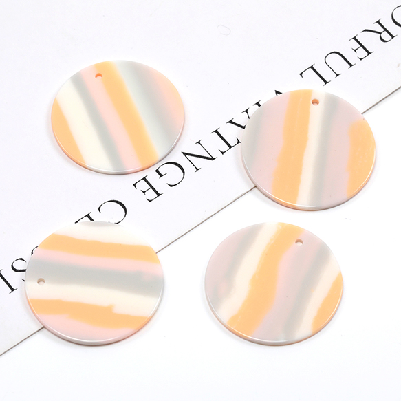 樹脂パーツ 樹脂製 ラウンド プレート サークル ストライプカラー アクリルパーツ 1穴 約30mm(10ヶ)