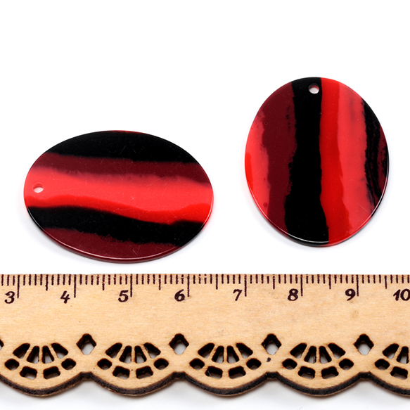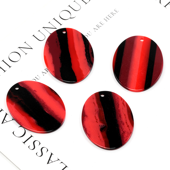 樹脂パーツ 樹脂製 オーバル プレート サークル ストライプカラー アクリルパーツ 1穴 約26×34mm(10ヶ)