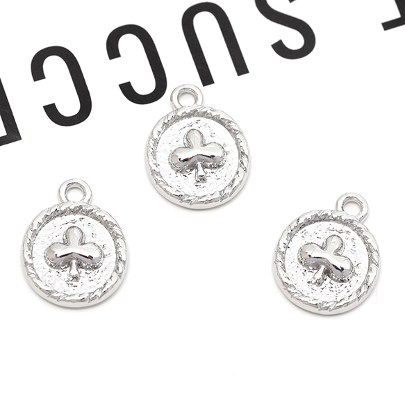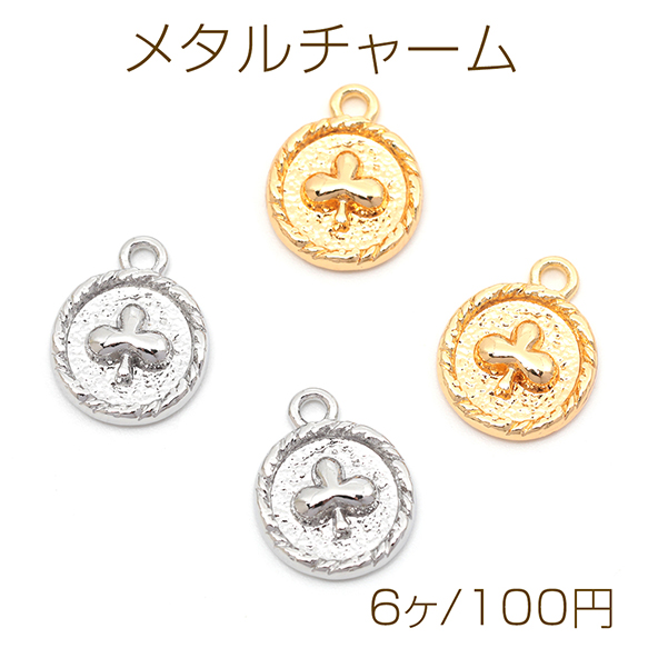 メタルチャーム 合金製 カメオ風チャーム ラウンド型 蓮 フラワー メタルパーツ 1カン付き 約12×15mm(6ヶ)