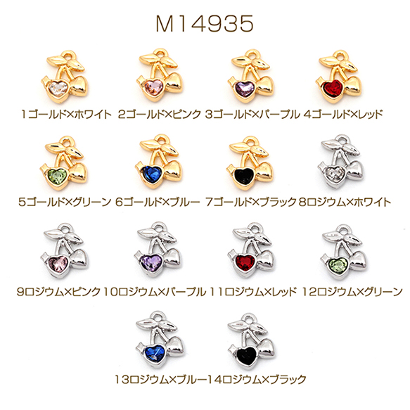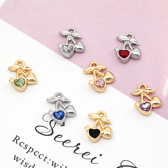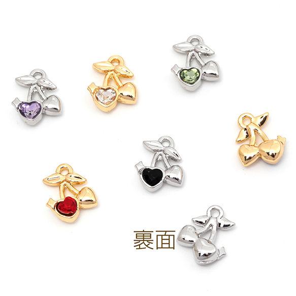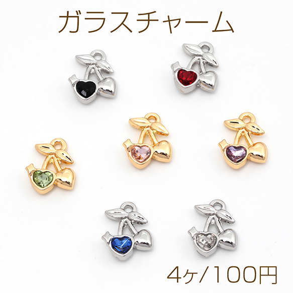 ガラスチャーム 合金製 チェリー さくらんぼ フルーツ ガラスストーン付き メタルチャーム 約10×11mm(4ヶ)