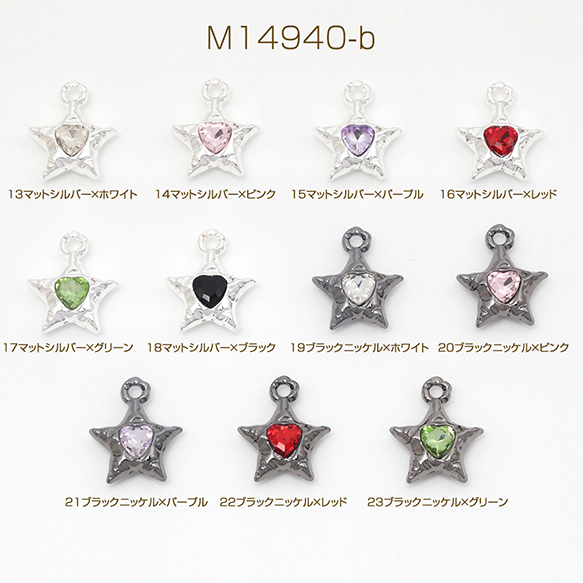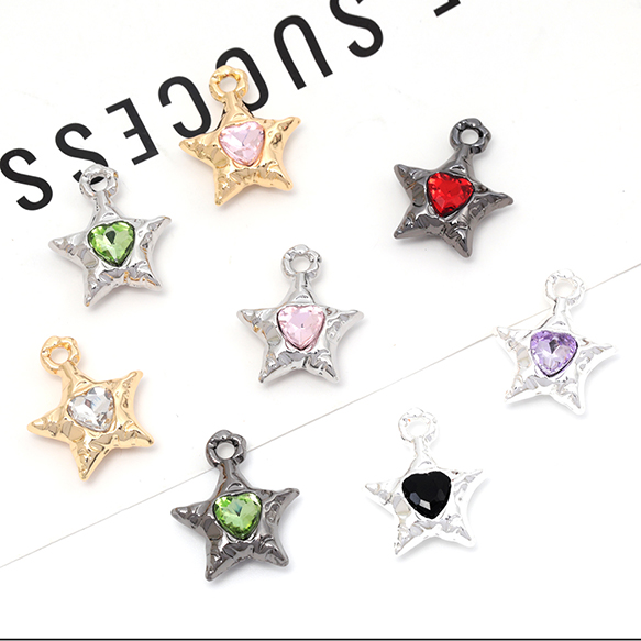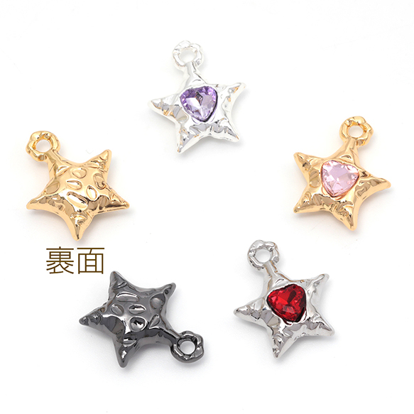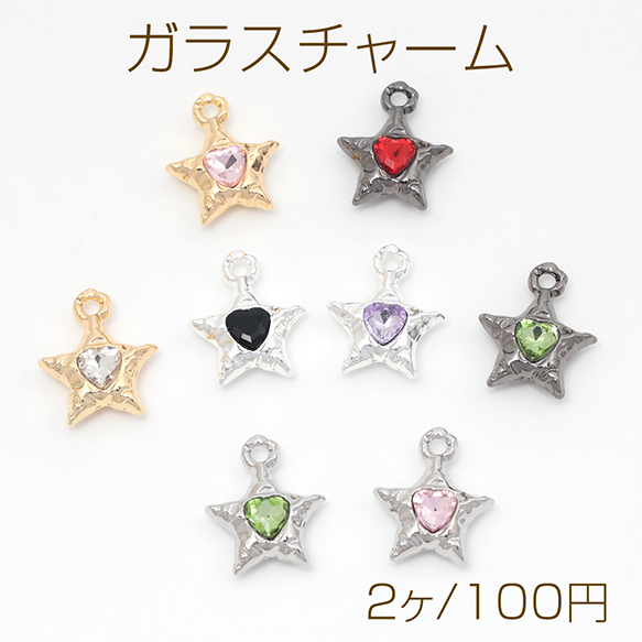 ガラスチャーム 合金製 スター 星 宇宙 ハート ガラスストーン付き メタルチャーム 種類b 約17×20mm(2ヶ)