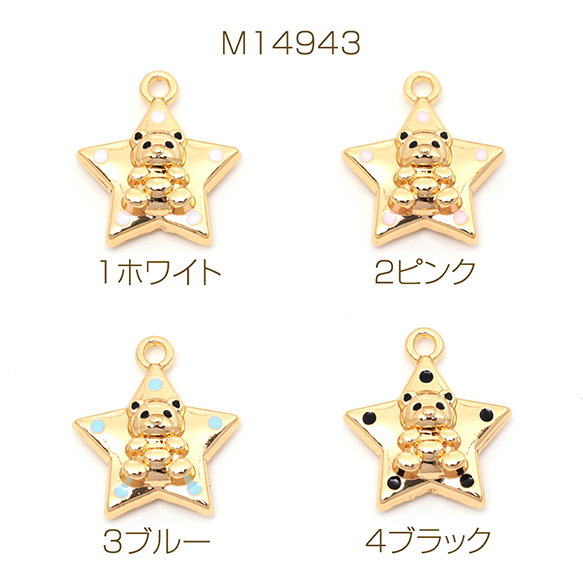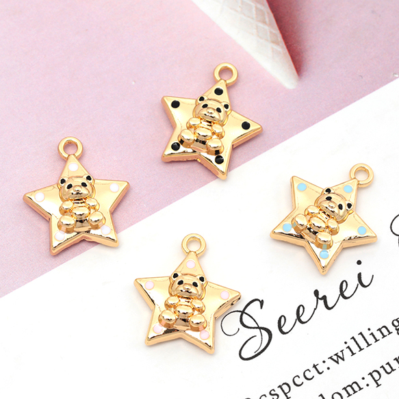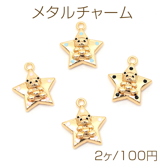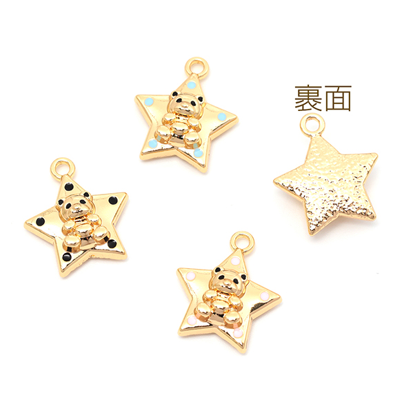 メタルチャーム 合金製 スター 星 くま テディベア 熊 動物 アニマル カラフルエポ メタルパーツ 約17×19mm(2ヶ)