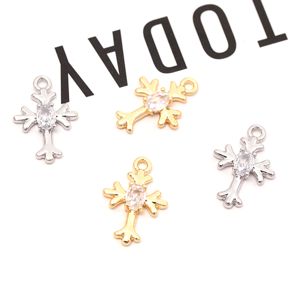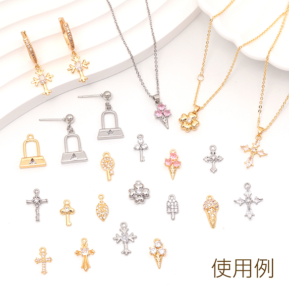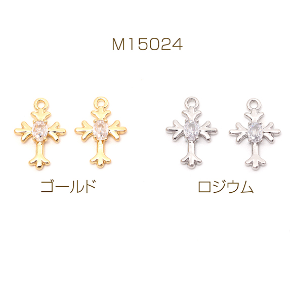 ジルコニアチャーム 銅製 クロス 十字架 メタルチャーム 約10×15mm(2ヶ)