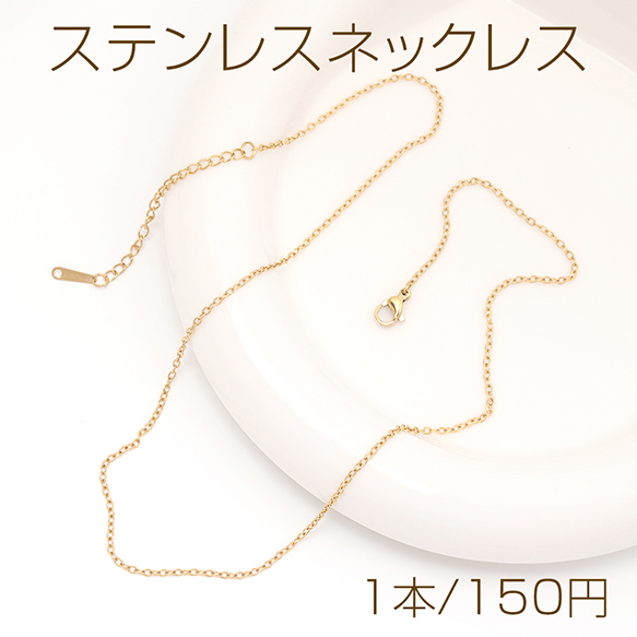 ステンレスネックレス 高品質 デザインチェーン 電気メッキ加工 SUS304 長さ約45+5cm(幅約1.5mm)(1本)