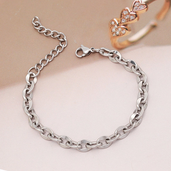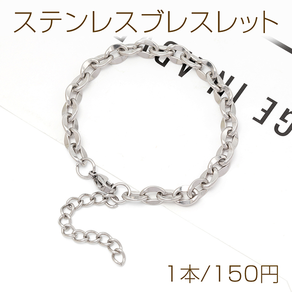ステンレスブレスレット 高品質 デザインチェーン 電気メッキ加工 SUS304 長さ約18+4cm(幅約6.5mm)(1本)