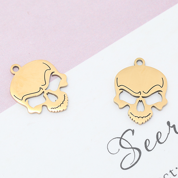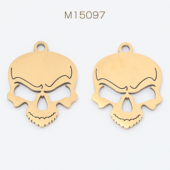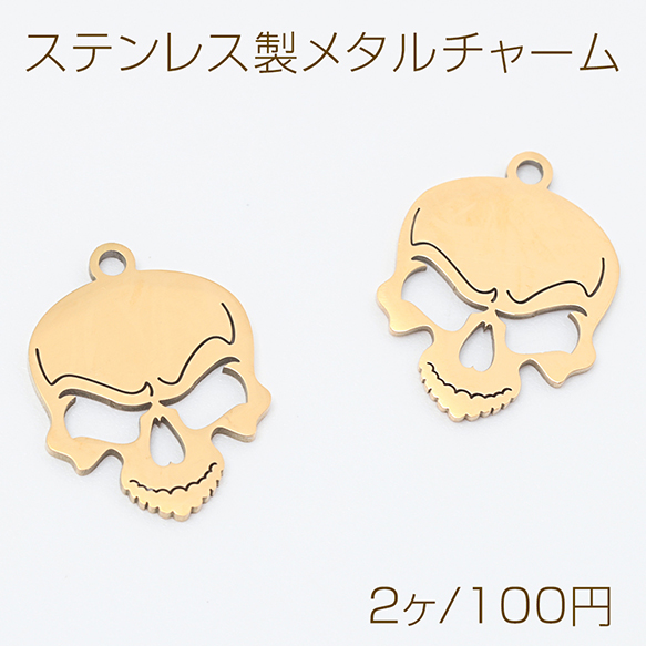 ステンレス製メタルチャーム スカル ドクロ 高品質 チャーム 電気メッキ加工 SUS304 約13×17mm(2ヶ)