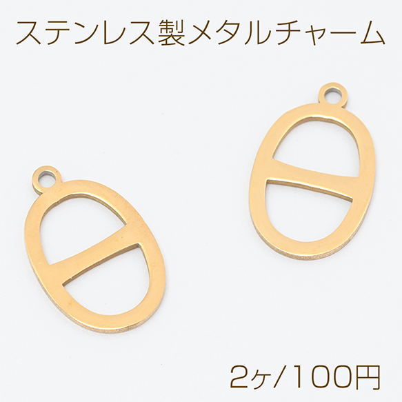 ステンレス製メタルチャーム オーバルリング 高品質 チャーム 電気メッキ加工 SUS304 約11×17mm(2ヶ)