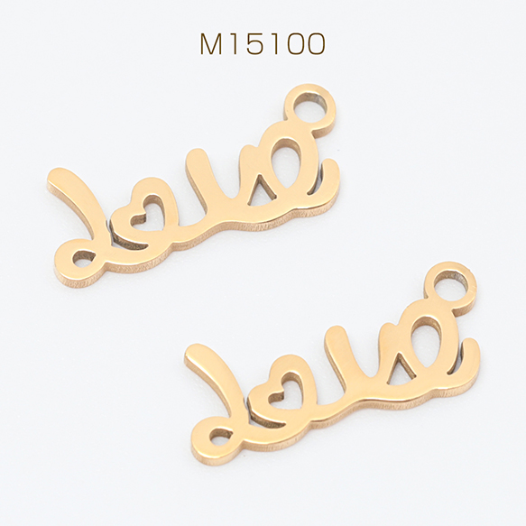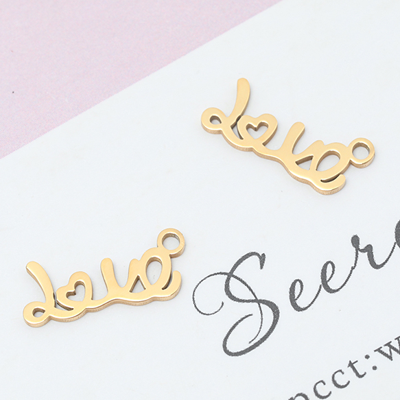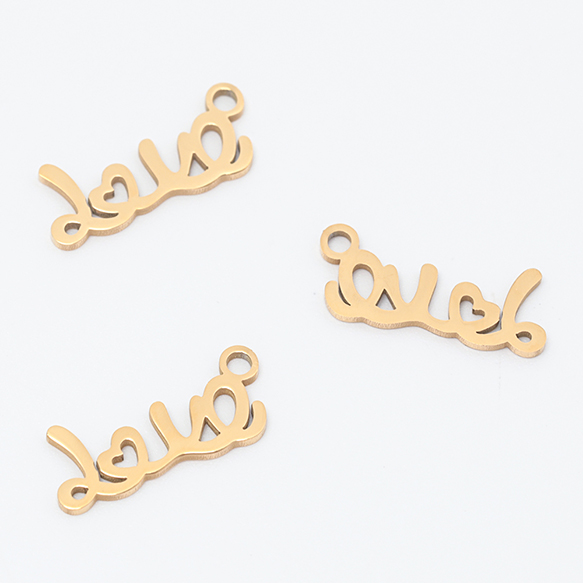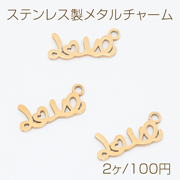 ステンレス製メタルチャーム LOVE 高品質 チャーム 電気メッキ加工 SUS304 約6×16mm(2ヶ)