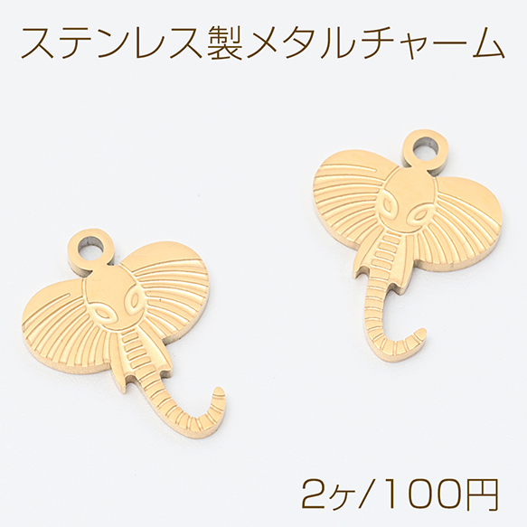 ステンレス製メタルチャーム 象 アニマル 高品質 チャーム 電気メッキ加工 SUS304 約12×15mm(2ヶ)