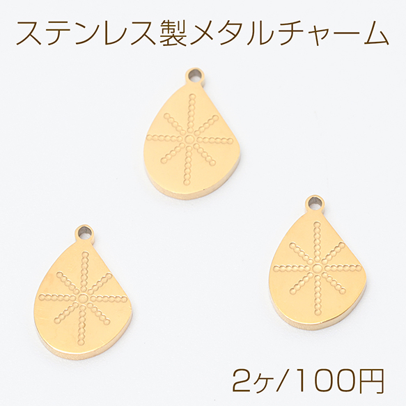 ステンレス製メタルチャーム しずく 高品質 チャーム 電気メッキ加工 SUS304 約8×11mm(2ヶ)