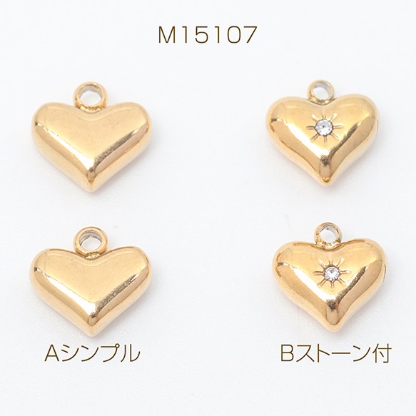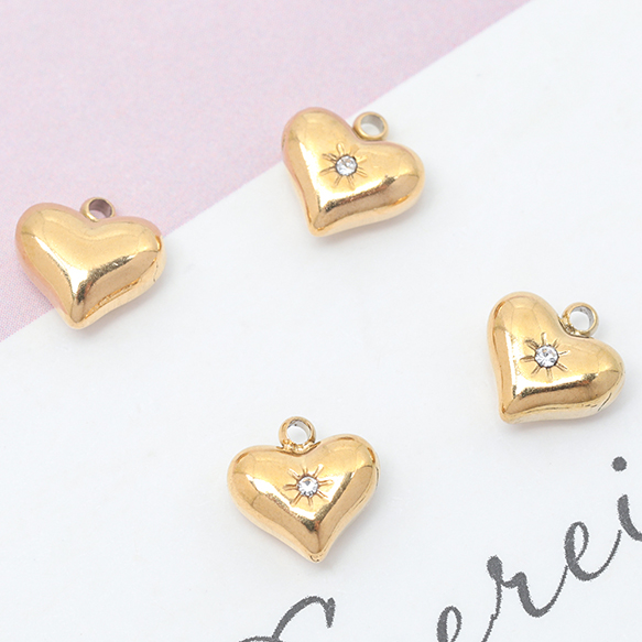 ステンレス製メタルチャーム ハート 高品質 チャーム 電気メッキ加工 SUS304 全2種(1ヶ)