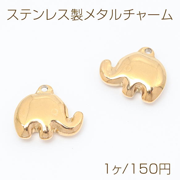 ステンレス製メタルチャーム 象 アニマル 高品質 チャーム 電気メッキ加工 SUS304 約13×15mm(1ヶ)