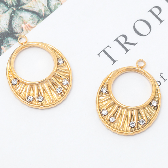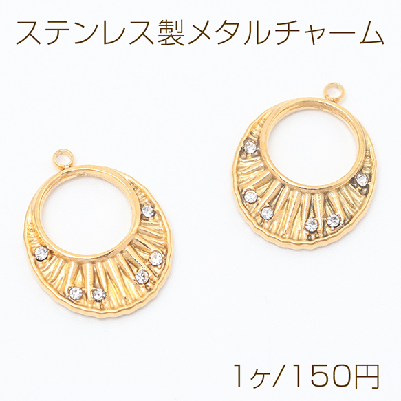 ステンレス製メタルチャーム オーバル ストーン付 高品質 チャーム 電気メッキ加工 SUS304 約15×20mm(1ヶ)