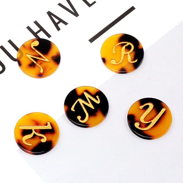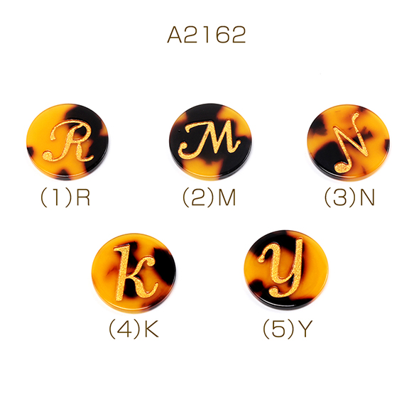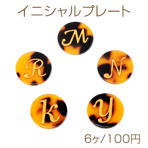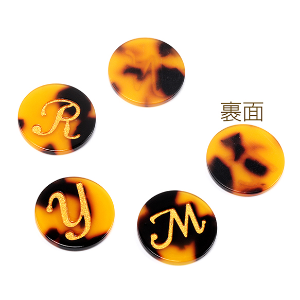 イニシャルプレート R M N K Y リールキーホルダー貼付け用 イニシャル刻印 マーブル模様 樹脂製 約17mm(6ヶ)