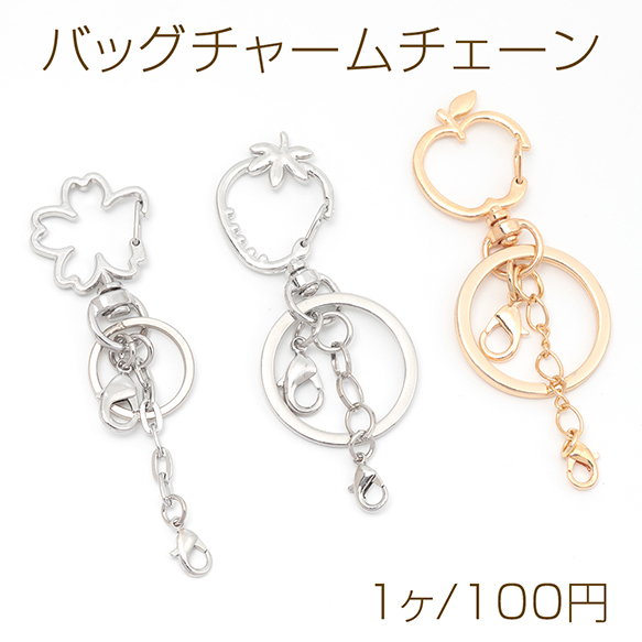 バッグチャームチェーン キーチェーン さくらカン いちごカンリンゴカン カニカン付き チェーンストラップ キーホルダー(1本)
