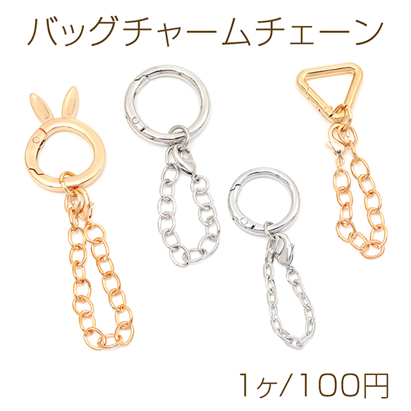 バッグチャームチェーン キーチェーン うさぎカン 三角カン 丸カン チェーンストラップ キーホルダー(1本)