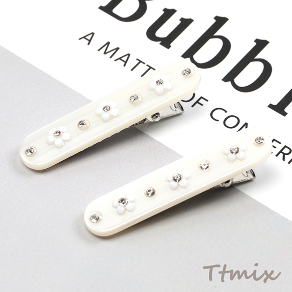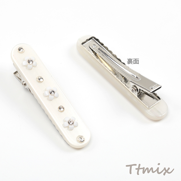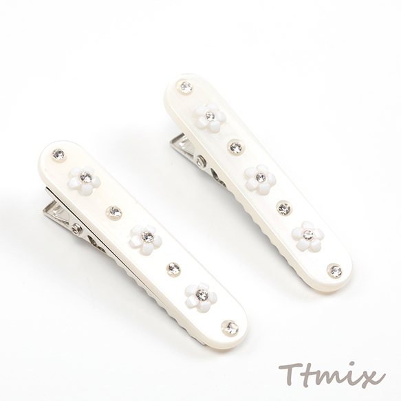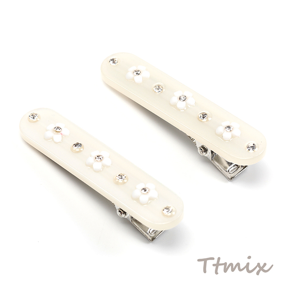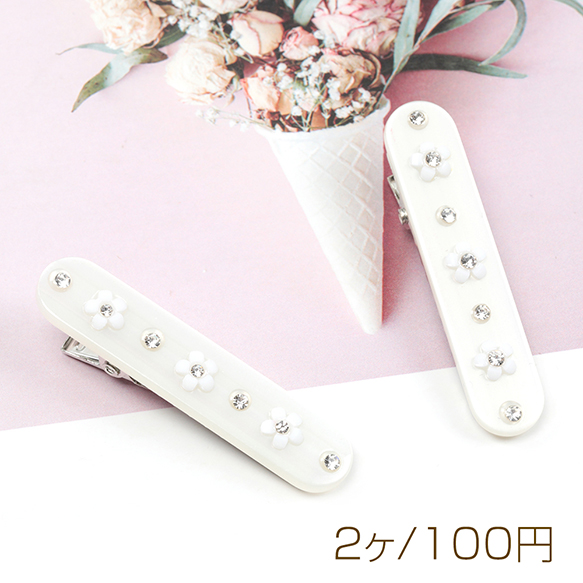 ヘアクリップ フラワー装飾 ヘアクリップ 髪飾り ヘアアクセサリー ストーン付き 前髪留め 約1×5cm(2本)
